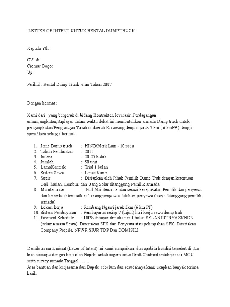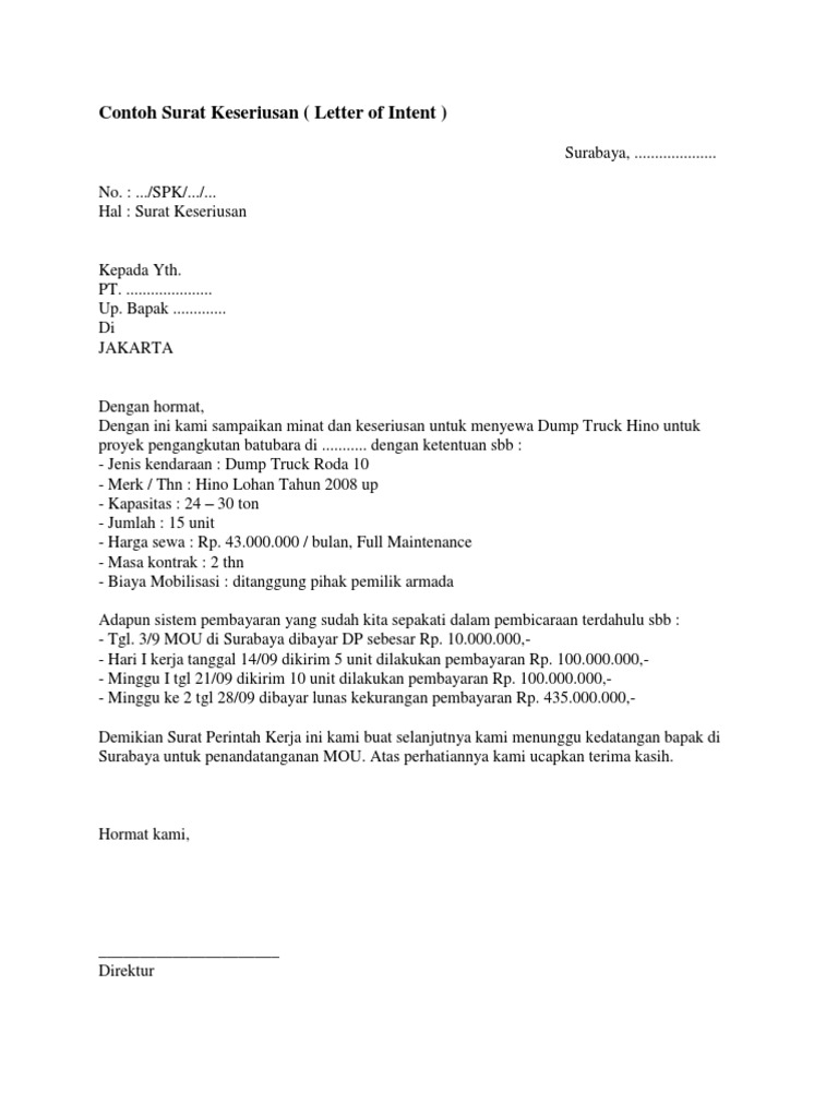 Contoh Surat Minat Letter Of Intent Contoh Seputar Surat Otosection