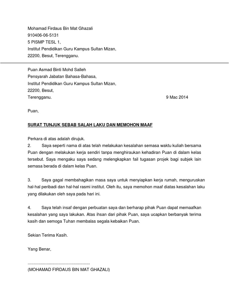 Contoh Surat Rasmi Tunjuk Sebab Pdf
